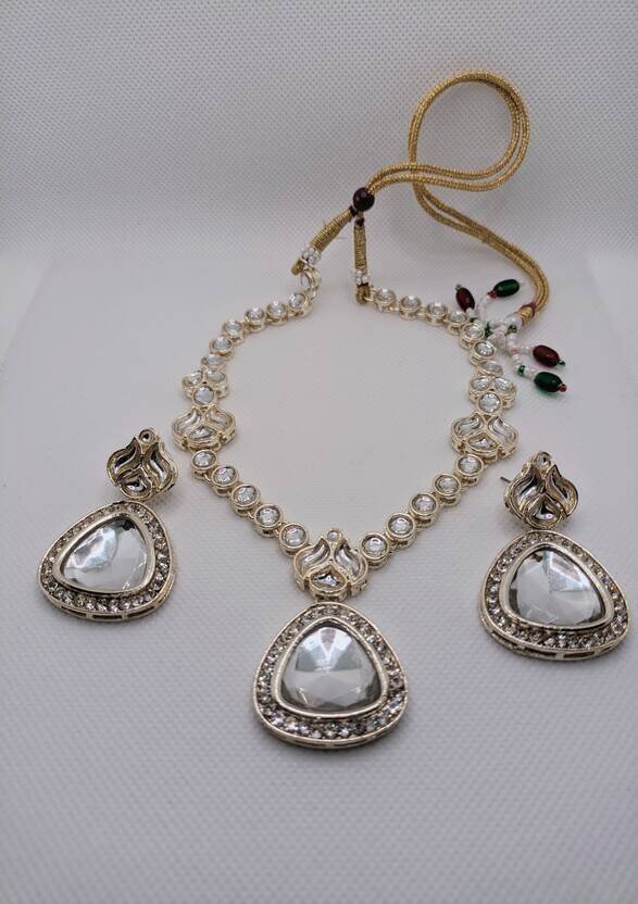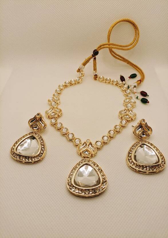 Golden Necklace & Earring with white pearl stones Lightweight Comfortable design Perfect for any occasion